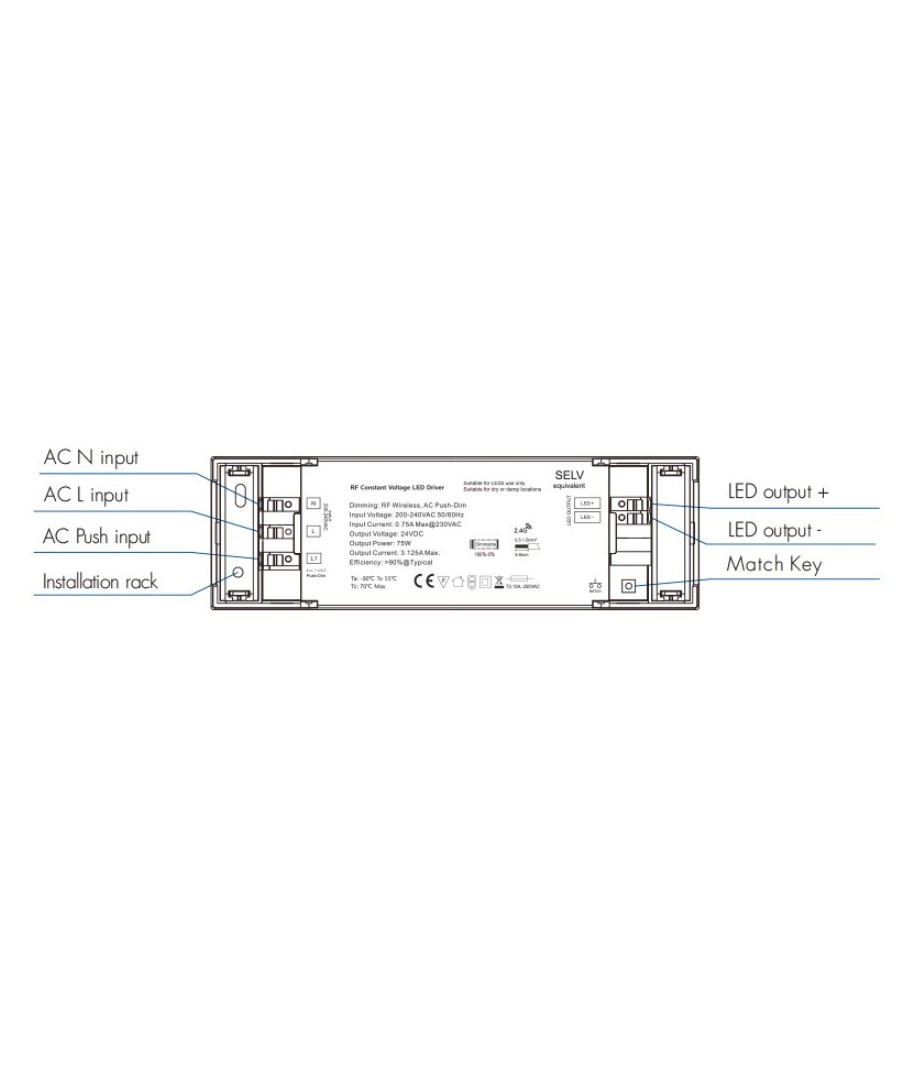 Denna strömförsörjning är designad för moderna belysningslösningar, vilket gör den idealisk för användare som söker en pålitlig och effektiv energikälla för sina LED-armaturer. Med en kapacitet på 75W, är den perfekt anpassad för att möta kraven av diverse belysningssystem.