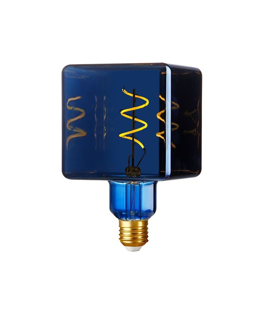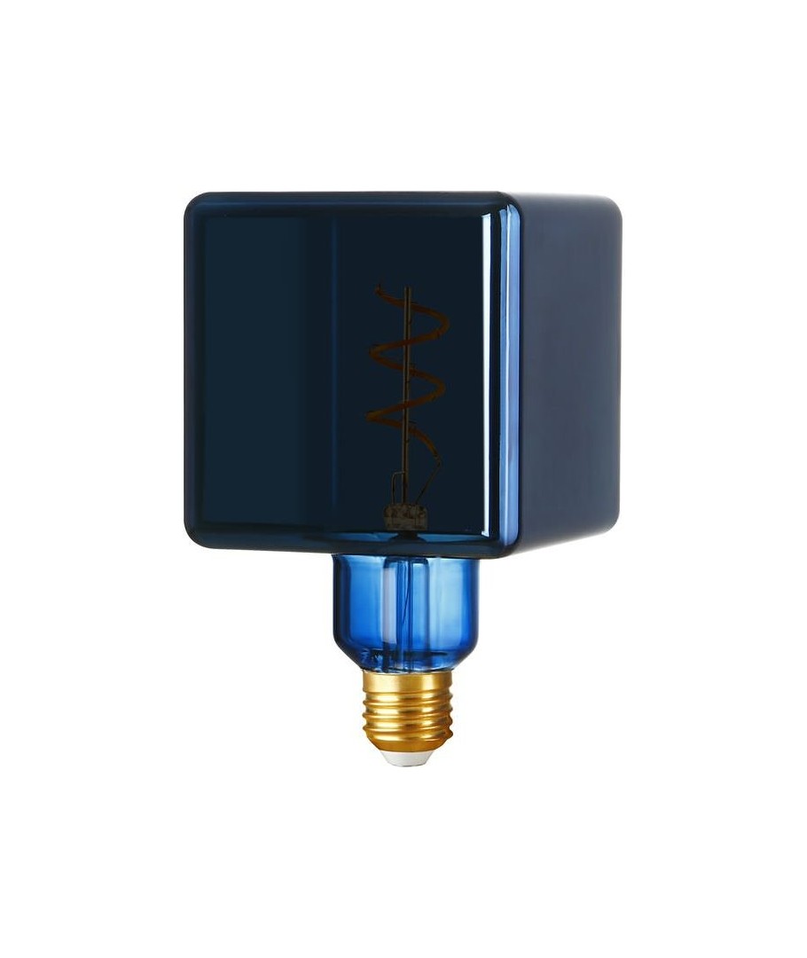 E27 4W dimbar LED-lampa i unik 'Ice Cube'-form, perfekt för dekorativa ändamål med en snygg metallic blå finish.