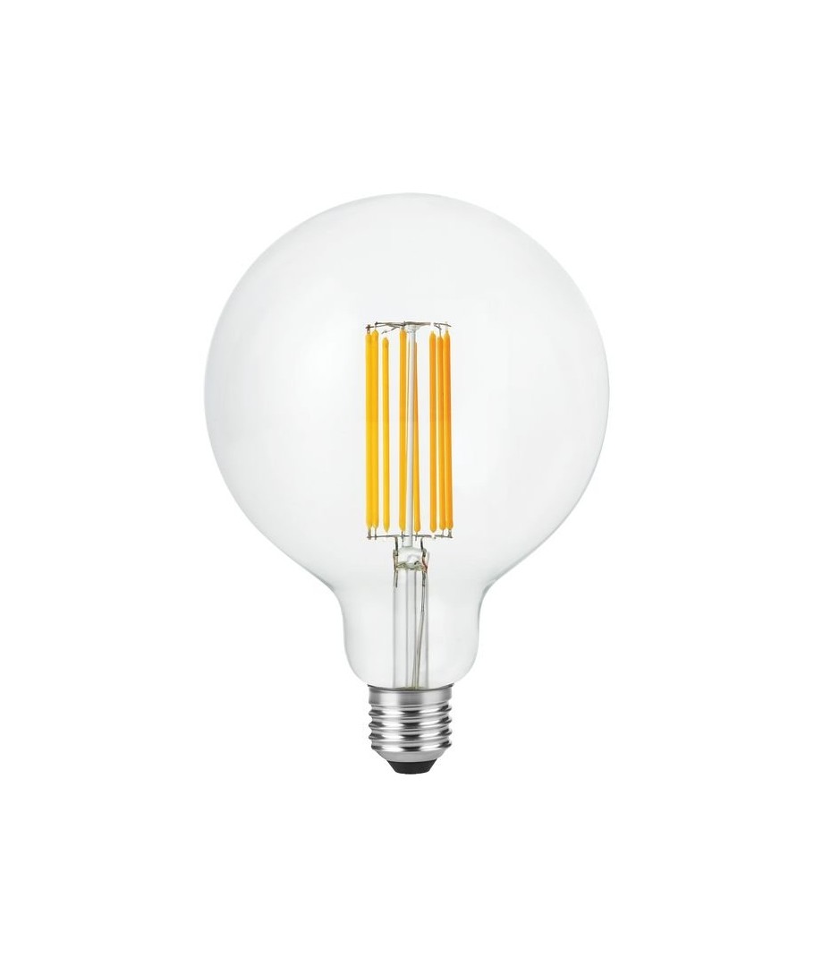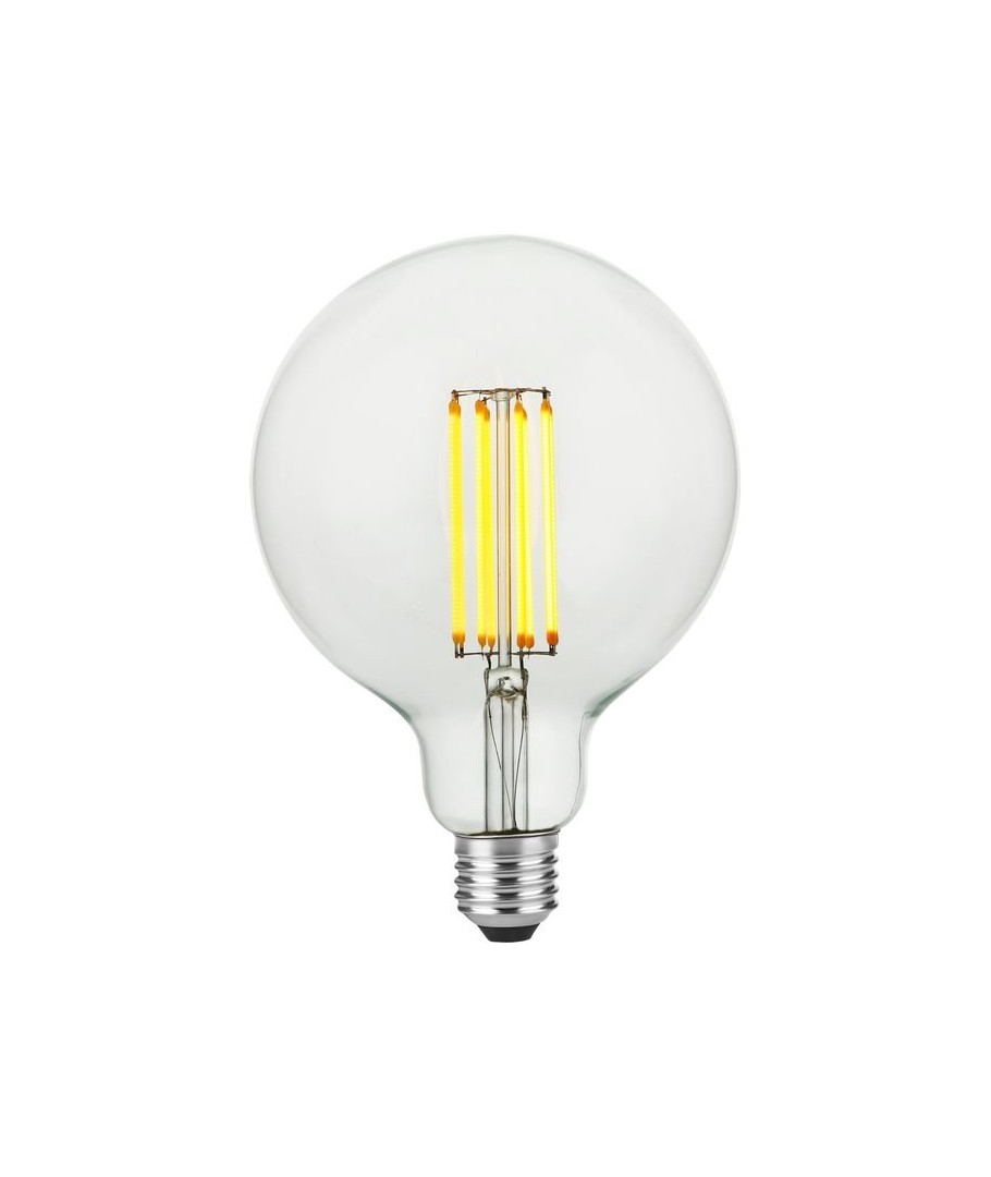E27 7W dimbar LED glob-lampa - G125, filament, 2200K, 600lm med klart glas ger en varm belysning.- Ljusstyrka: 600 lumen, vilket säkerställer en stark och klar belysning.