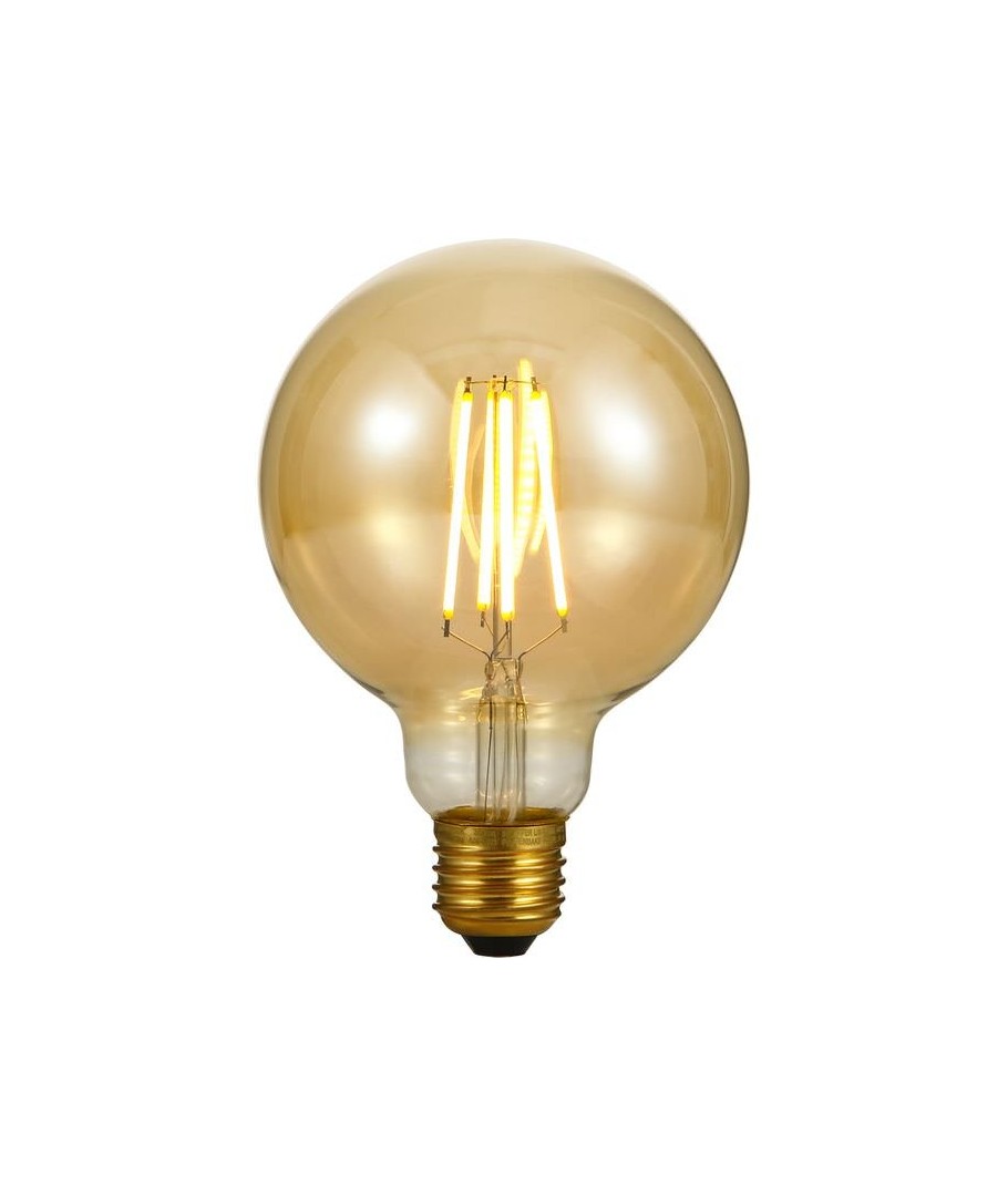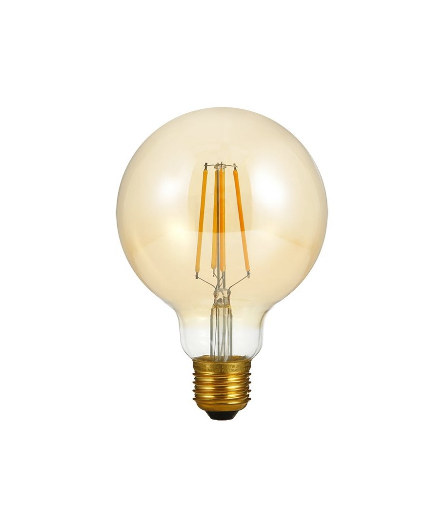 E27 4W dimbar LED-globelampa kombinerar effektivitet och stilren design med ett gyllene glasutseende.