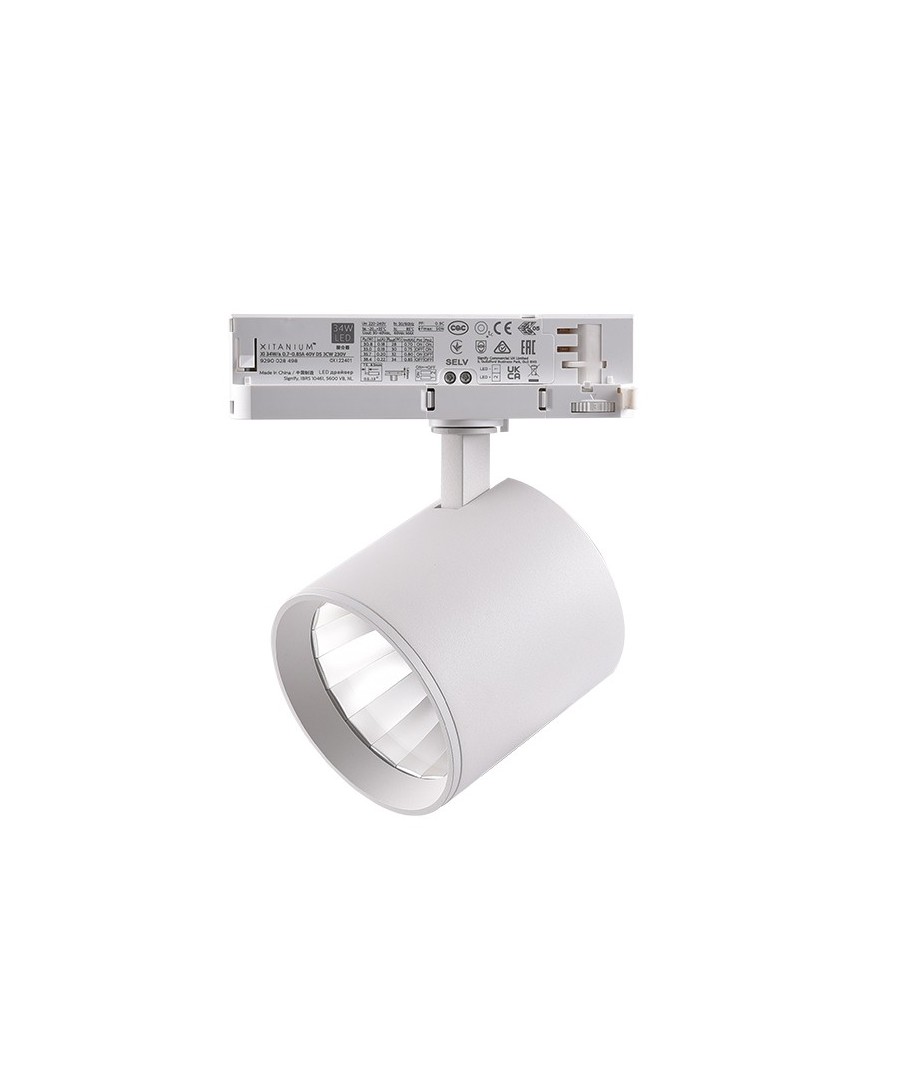 Elegant 70Lm/W LED-skenspot till 3-fas skensystem med driftdonslådan längs med skenan.