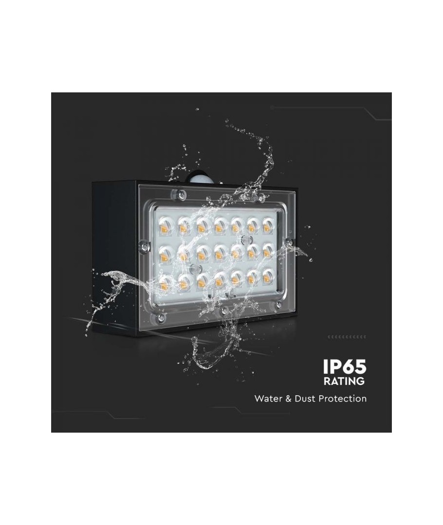 Med V-Tac 3W Solar vägglampa LED får du en smart och miljövänlig belysningslösning för ditt hem eller trädgård. Denna svarta vägglampa är utrustad med en inbyggd sensor och erbjuder en ljusstyrka på 350 lm, vilket ger tillräckligt med ljus för att skapa en säker och inbjudande atmosfär.