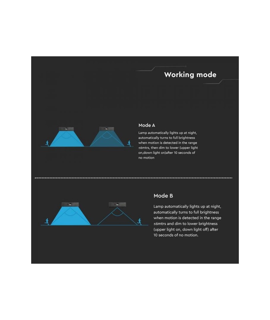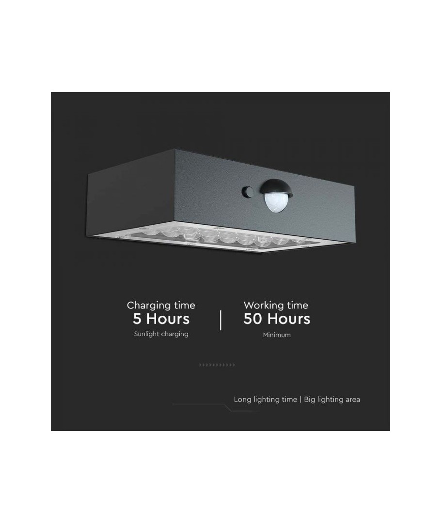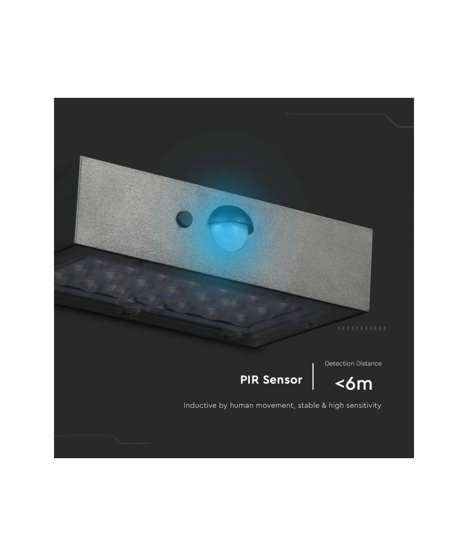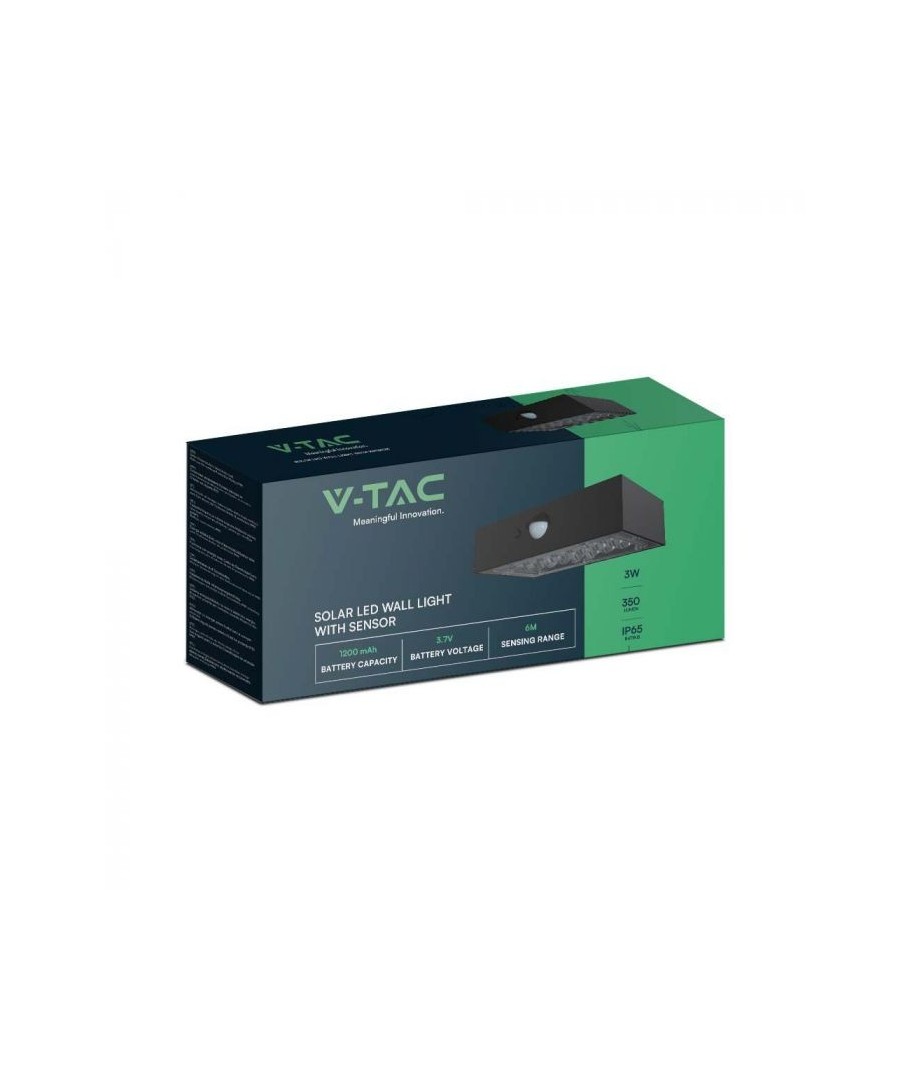 Sammanfattningsvis är V-Tac 3W Solar vägglampa LED en pålitlig och stilren lösning för dem som söker hållbar belysning utan att kompromissa med design eller funktionalitet. Den är perfekt för att lysa upp entrén, trädgården eller terrassen och erbjuder både säkerhet och estetik i en och samma produkt.