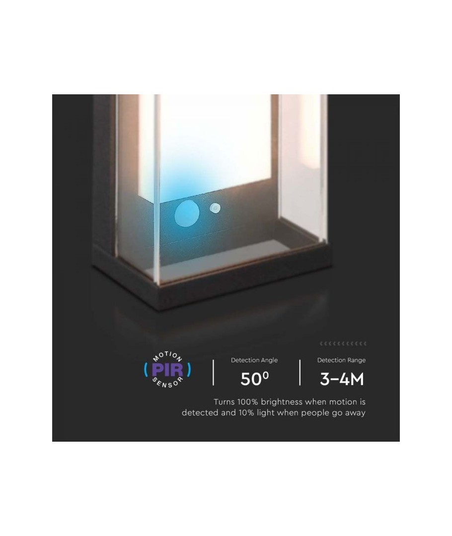 Lampan är utrustad med en sensor som aktiverar belysningen automatiskt vid rörelse, vilket inte bara sparar energi utan också bidrar till ökad säkerhet genom att snabbt reagera på närvaro i dess närhet.