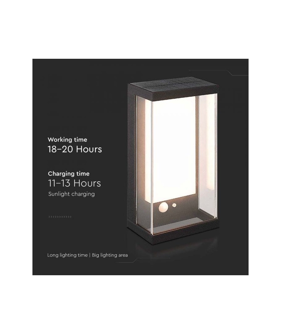 Denna vägglampa är utrustad med en IP54-certifiering, vilket säkerställer ett fullständigt skydd mot damm och vattenstänk. Med sin avancerade solcellsteknik kan lampan ladda sig själv på bara 11-13 timmar och ge upp till 18-20 timmars ljusstyrka. Den inbyggda sensorn har även en räckvidd på upp till 4 meter, så lampan tänds automatiskt när rörelse upptäcks i närheten. Gör din trädgård eller entré säker och snygg med V-Tac 1W LED Solar vägglampa.