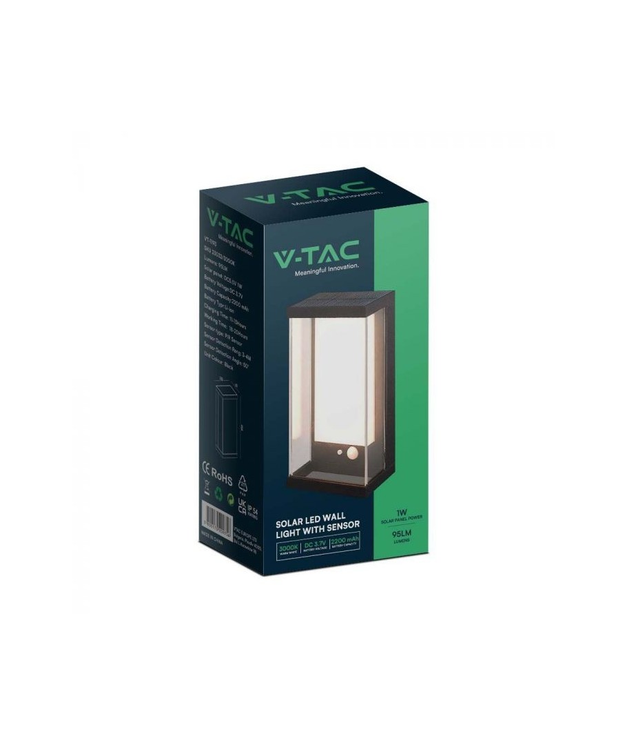 Sammanfattningsvis är denna V-Tac 1W solcellsdrivna vägglampa med LED-teknologi ett utmärkt val för dem som söker en hållbar, säker och estetiskt tilltalande belysningslösning för utomhusbruk.