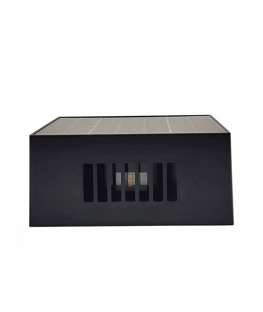 Denna sofistikerade vägglampa är designad för att förbättra utomhusmiljön med både stil och funktionalitet. Med dess slimmade fyrkantiga form och trendiga svarta färg passar den in i de flesta moderna exteriörer.