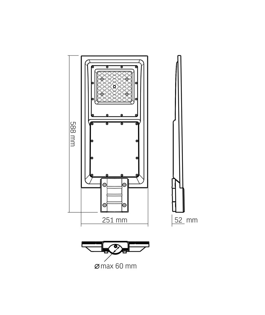 Ljusstyrka och Kvalitet:Denna LED solcellsgatlykta kombinerar hög prestanda med långvarig hållbarhet, vilket gör den till en pålitlig lösning för utomhusbelysning. Med dess moderna teknik och slitstarka konstruktion är den anpassad för att klara av olika väderförhållanden samtidigt som den levererar en kraftfull och jämn belysning.