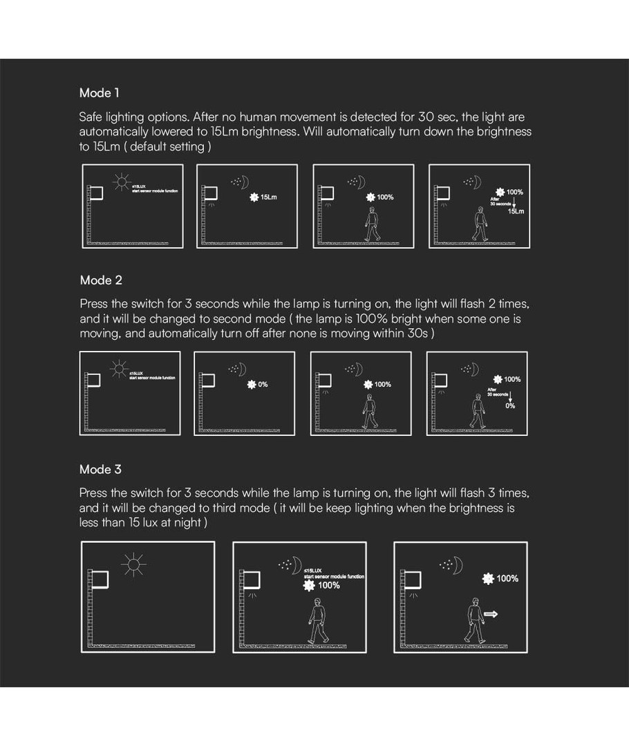 Den modernt designade svarta finishen ger en stilren look som passar alla typer av exteriörer. Med den inbyggda sensorn aktiveras lampan automatiskt vid rörelse, vilket inte bara sparar energi utan också ökar säkerheten och tryggheten runt ditt hem.
