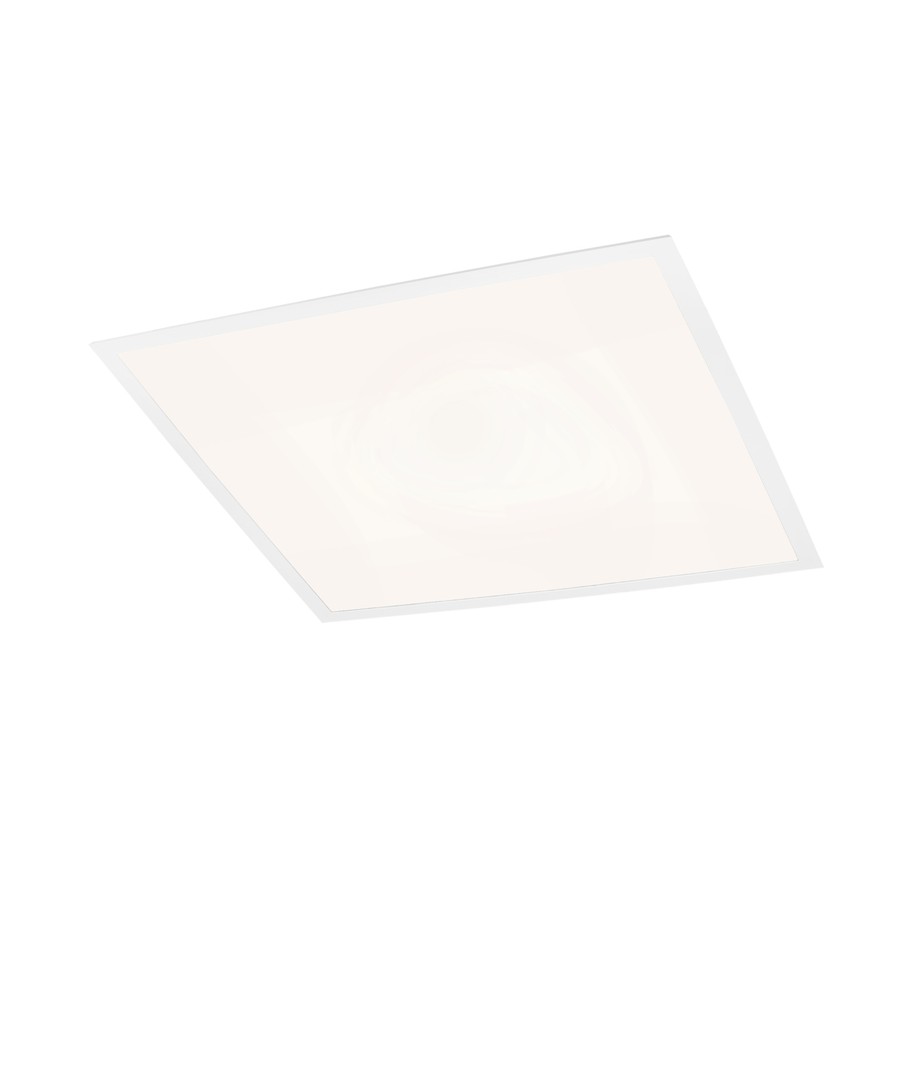 Panelen har en elegant och diskret vit kant och den integrerade ljuskällan innebär att det inte behövs några extra armaturer, vilket gör installationen snabb och enkel.