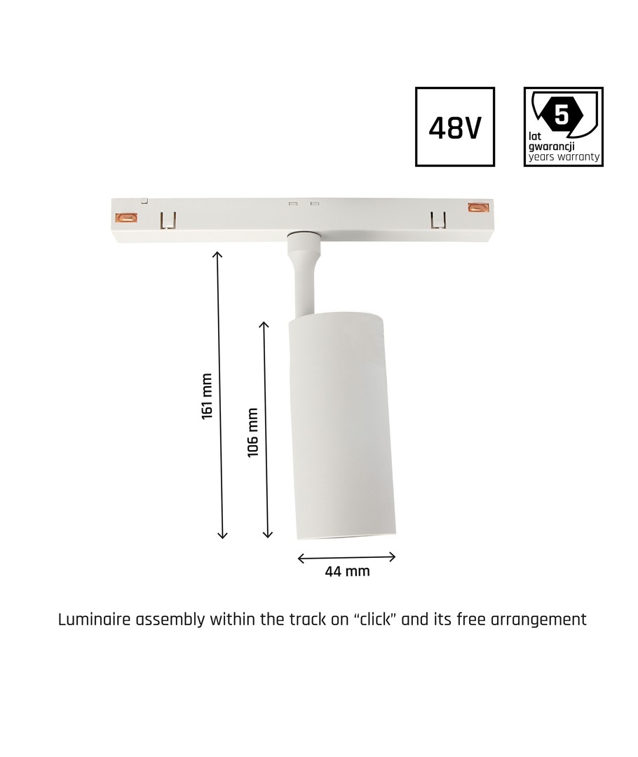 Denna innovativa skenspot är perfekt för dig som söker en kombination av stil och funktion. Med en effekt på 10W och designad för att anslutas till 48V DC, passar den perfekt i olika miljöer där kontrollerat ljus är av största vikt.