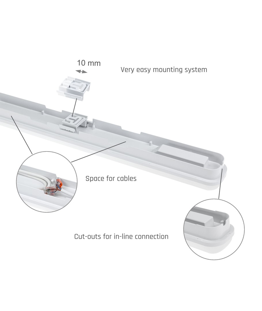 Med sina mått på 1200 x 52 x 60 mm är denna LED-armatur både diskret och elegant, vilket gör att den lätt kan integreras i olika typer av miljöer. Den har också en integrerad ljuskälla, vilket gör installationsprocessen snabb och enkel.