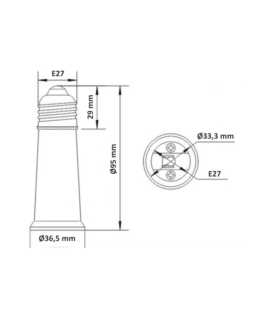 Förläng sockeln i din lampa med 9,5 cm. Används oftast i till exempel bordslampor där man vill få upp glödlampan högre i lampan.
