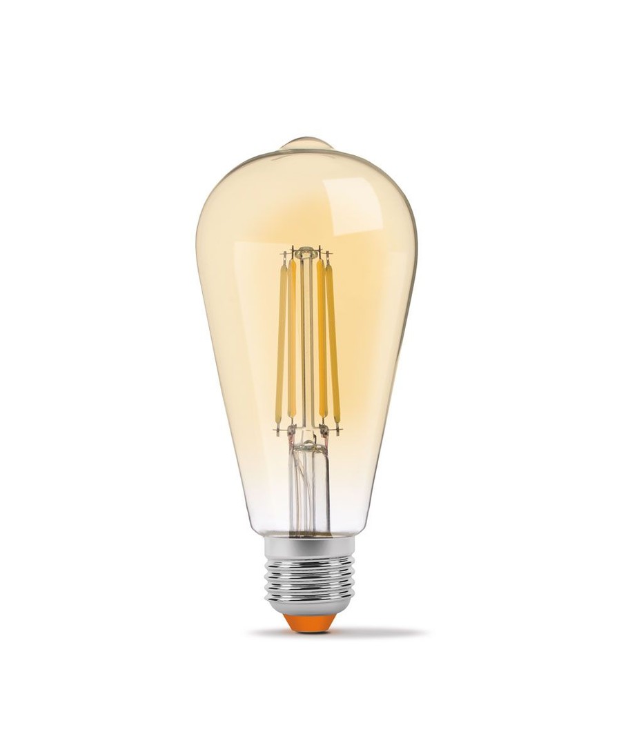 Denna eleganta och effektiva ST64 LED-lampa erbjuder en perfekt kombination av klassisk stil och modern teknik. Lampans bärnstensfärgade design återskapar känslan av en gammaldags glödtrådslampa, vilket ger ditt hem en varm och välkomnande atmosfär.