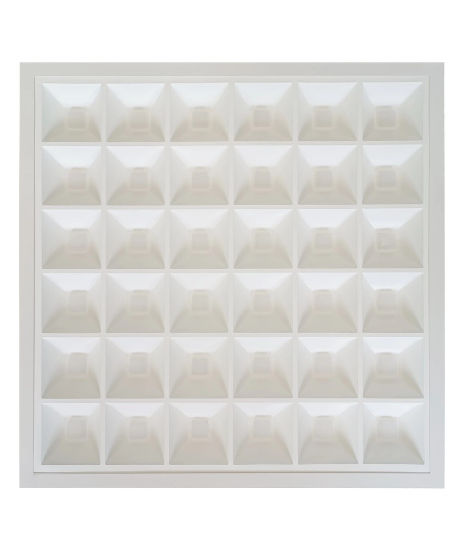 Med måtten 595 x 35 x 595 mm, passar denna panel diskret i standardiserade innertak. Den vita kanten ger ett stilrent och modernt utseende som enkelt smälter in i de flesta interiörer.