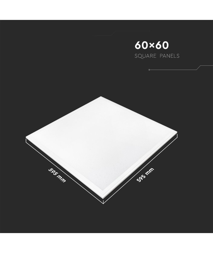 Med dimensioner på 595 x 9 x 595 mm är denna panel både kompakt och effektiv. Den har en diskret vit kant som enkelt smälter in i de flesta miljöer, och levereras med en integrerad ljuskälla.