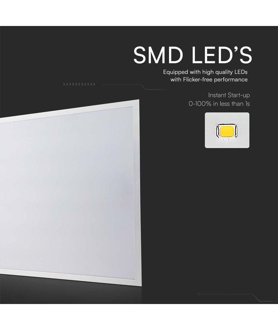 V-Tacs LED-panel erbjuder en hög ljusstyrka på 4800 lm och en effekt på 40W. Den är designad för att kopplas direkt till 230V, vilket gör den enkel att installera i såväl kontors- som hemmiljöer.