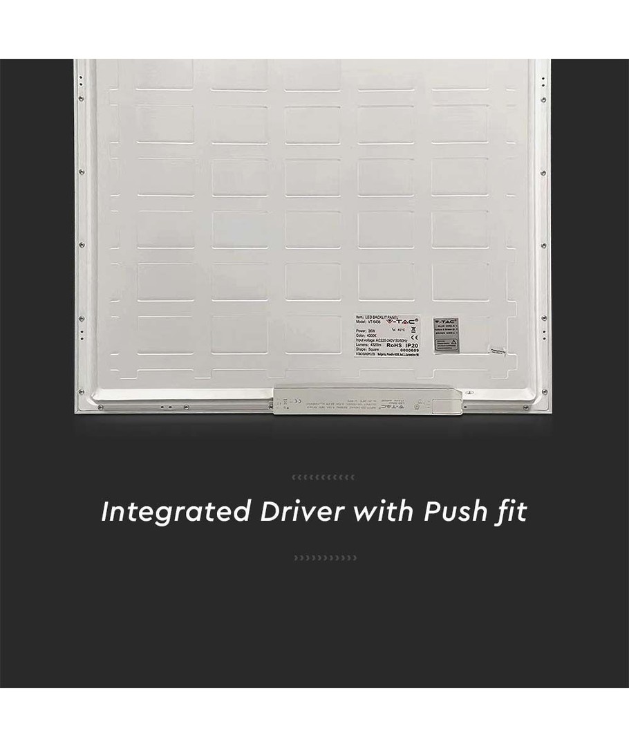 Panelen levereras komplett med ett icke-dimbart driver som kan anslutas till 230V.