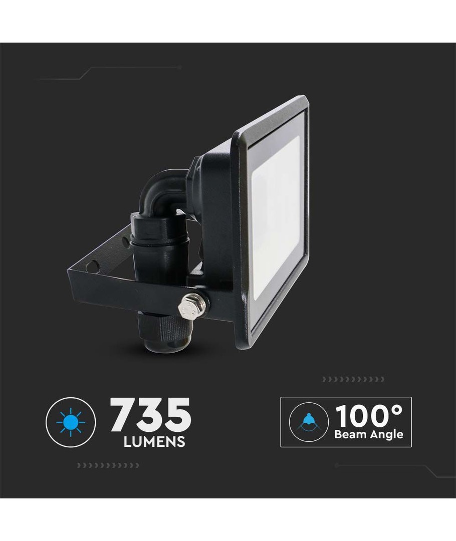 Denna kraftfulla LED-strålkastare är perfekt för att lysa upp dina utomhusytor. Med en effekt på 10W och en imponerande ljusstyrka på 735 lm, säkerställer produkten en klar och jämn ljusdistribution. Tack vare en bred spridning på 100 grader, täcker lampan stora områden effektivt.