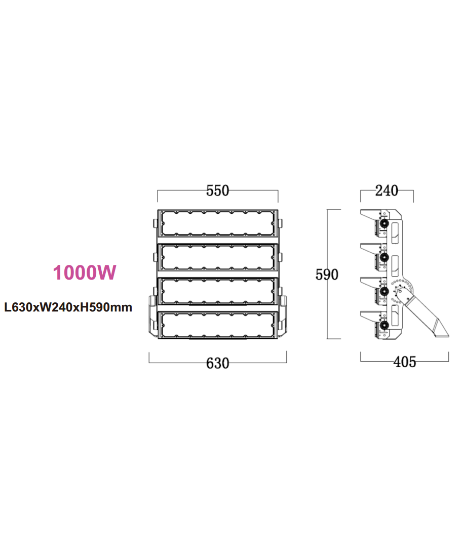 Upplev kraftfull belysning med denna stadionstrålkastare, designad för att leverera hög prestanda i olika miljöer. Med en effekt på 1000W och ljusstyrka på 170000 lm erbjuder den exceptionell klarhet och en bred spridning på 90 grader, vilket säkerställer jämn ljusfördelning.