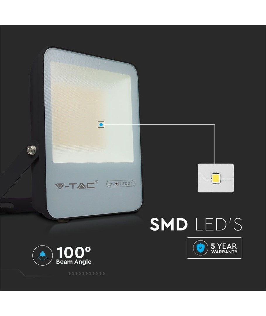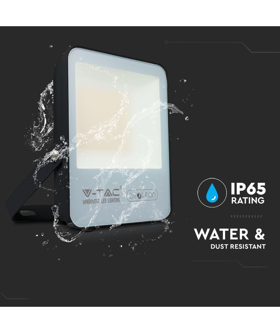 Strålkastaren är en del av V-Tac Evolution-serien och levereras med en 5 års fabriksgaranti, vilket säkerställer dess kvalitet och hållbarhet. Den är IP65-klassad, vilket innebär att den är skyddad mot vattenstänk och regn, perfekt för alla dina utomhusbehov.