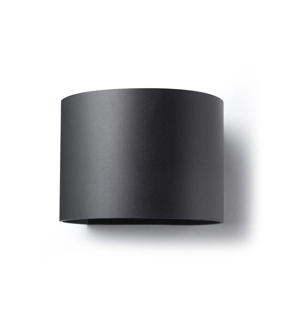 Modern och stilren utomhus LED vägglampa i svart, som är halvrund med flera inställningsmöjligheter. Lampan kan riktas och ljusmängden justeras efter eget önskemål. (0-100 grader spridningsvinkel på ljuset)