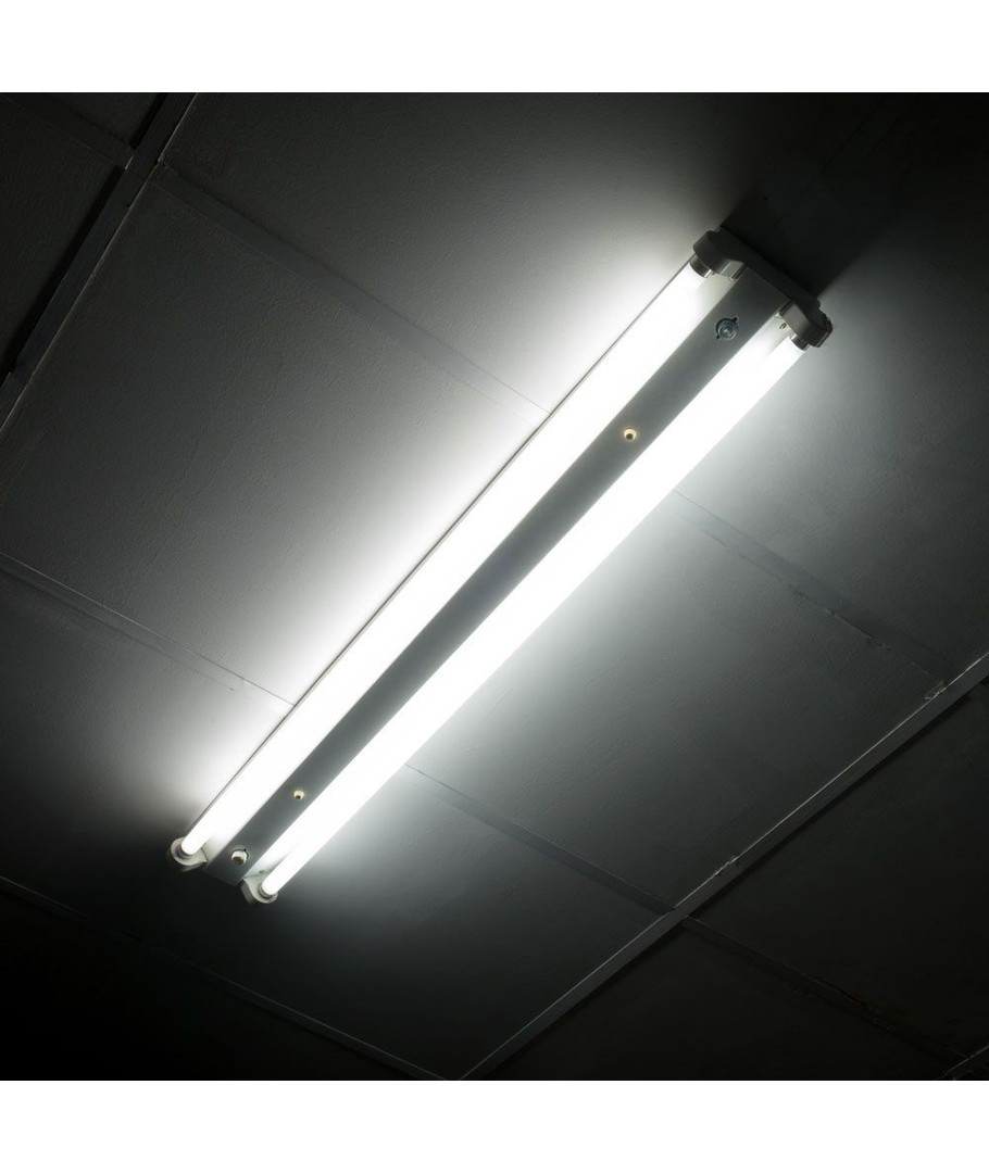 Öppen LED-armatur färdig för montering av T8 LED-lysrör.