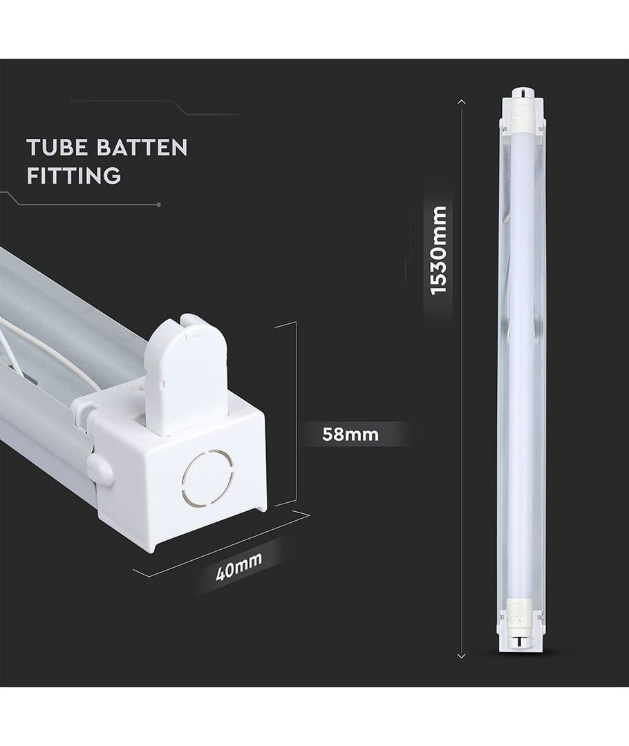 Öppen LED-armatur färdig för montering av T8 LED-lysrör.