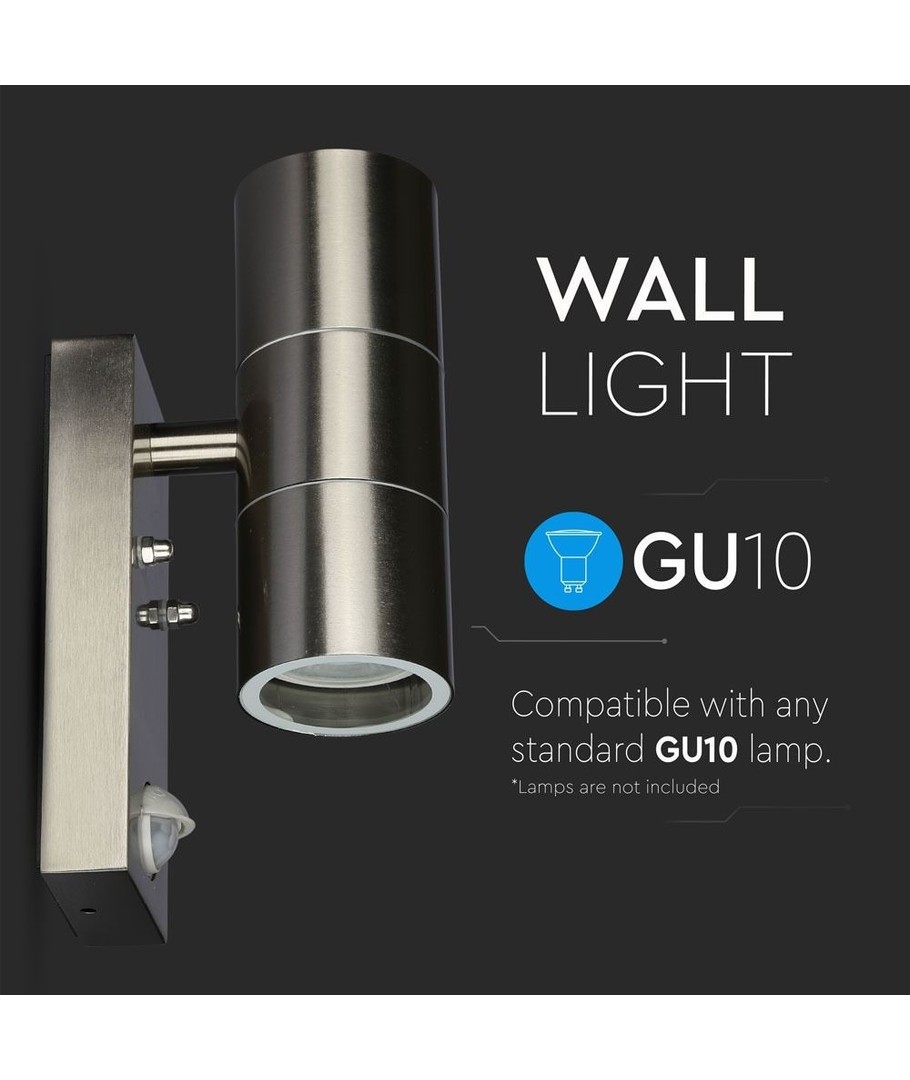 Utformad med en GU10 sockel, ger denna lampa möjlighet att välja ljuskälla efter behov för ett personligt ljusflöde uppåt och nedåt. Observera att ljuskällan inte ingår, vilket ger dig möjlighet att välja mellan olika ljusstyrkor och färgtemperaturer för att passa dina önskemål.