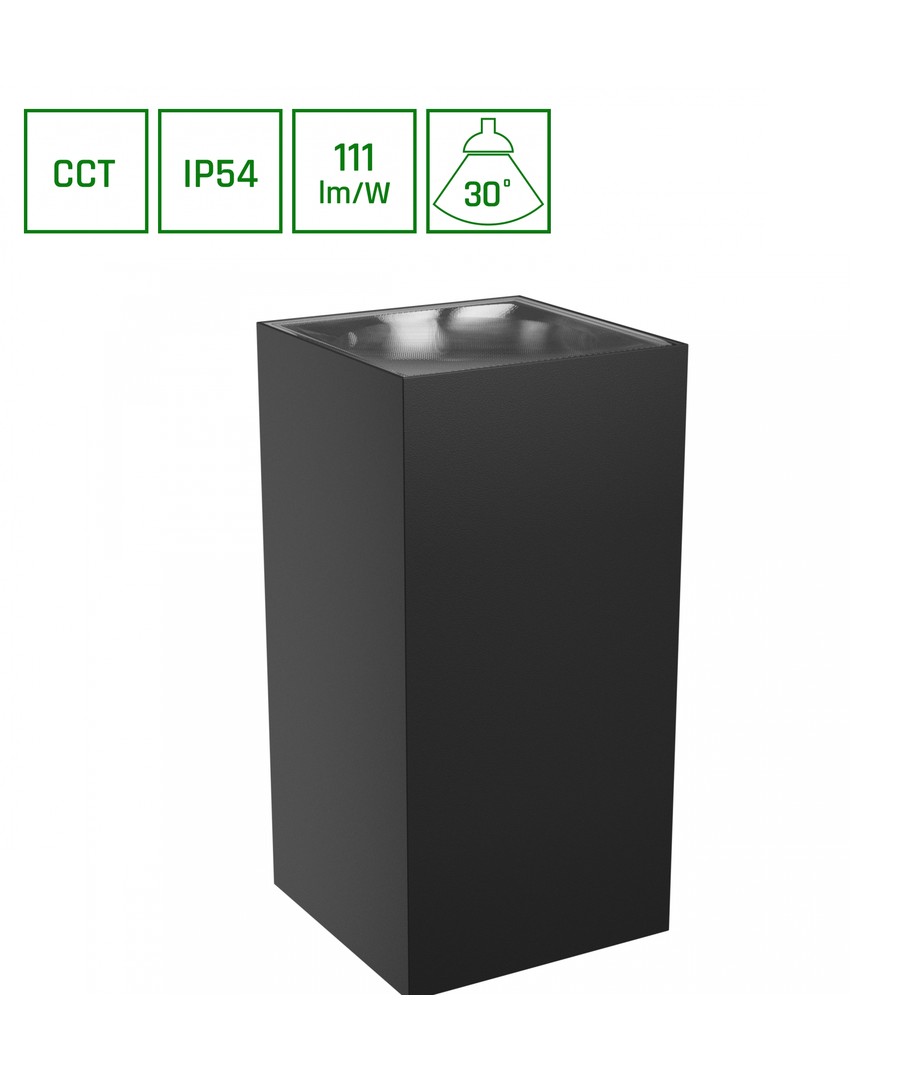 Upplev den eleganta och mångsidiga Torre 18W svart upp/ned vägglampa, som ger både stil och funktionalitet till dina utomhusområden. Denna fyrkantiga lampa är designad för att ge ditt hem ett modernt och sofistikerat utseende, samtidigt som den erbjuder flexibilitet med tre justerbara ljusfärger.