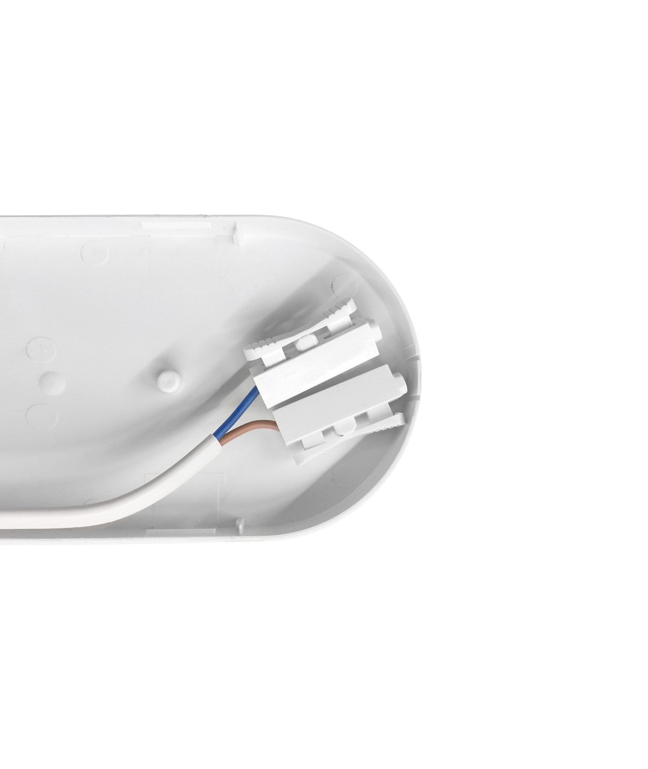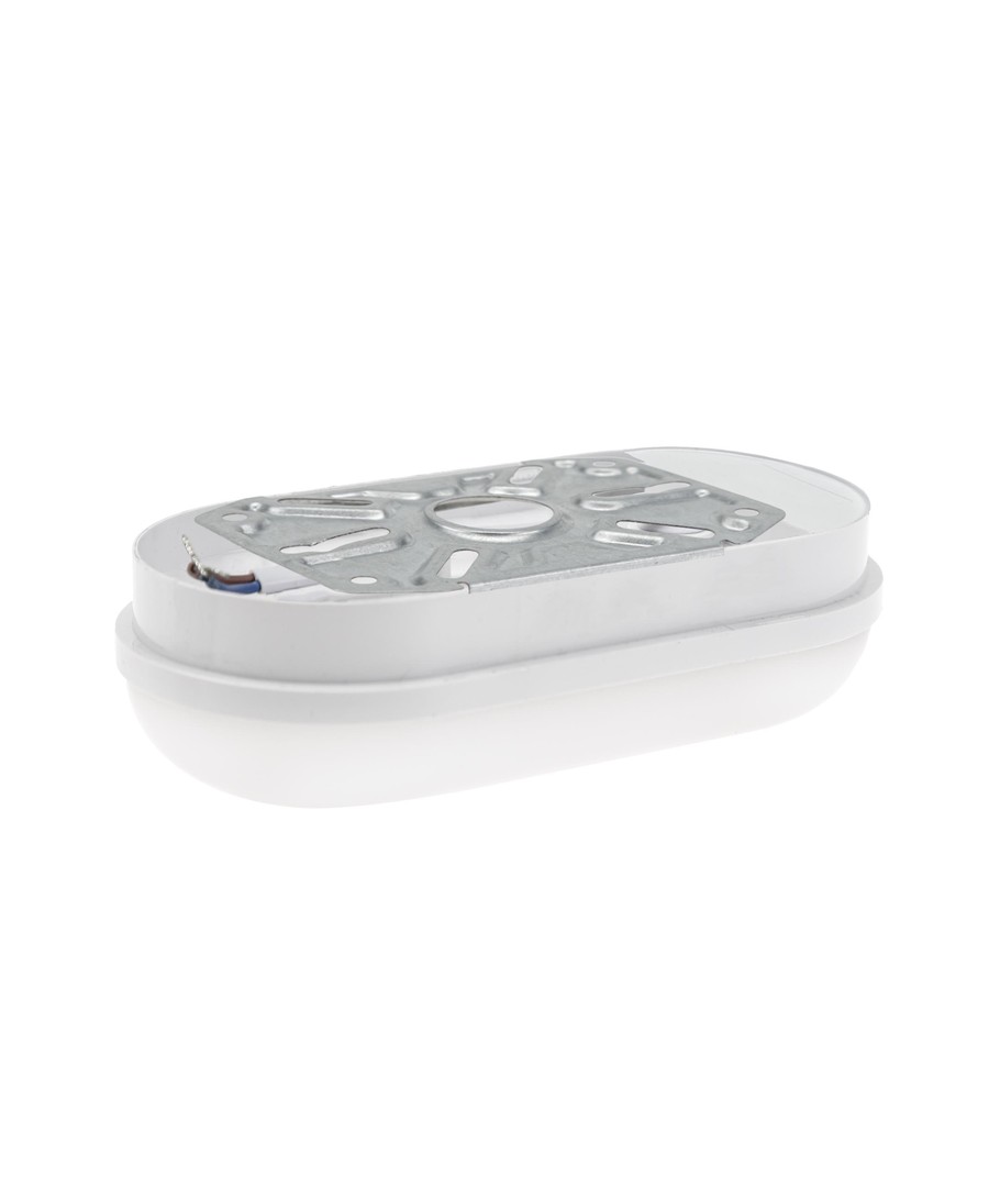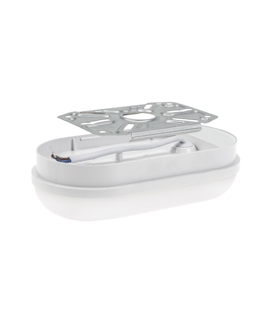 Denna vägglampa är försedd med en integrerad ljuskälla, vilket innebär minimalt underhåll och enkel installation. Oval och vit i designen, den smälter diskret in i olika inredningsstilar samtidigt som den ger effektiv belysning.