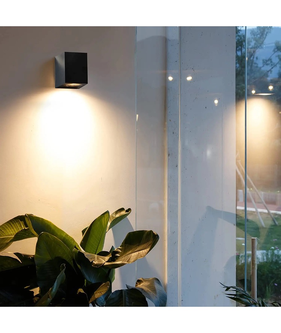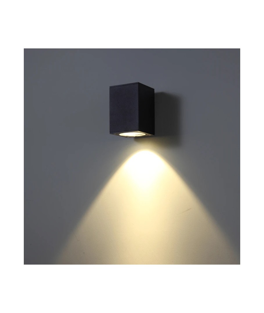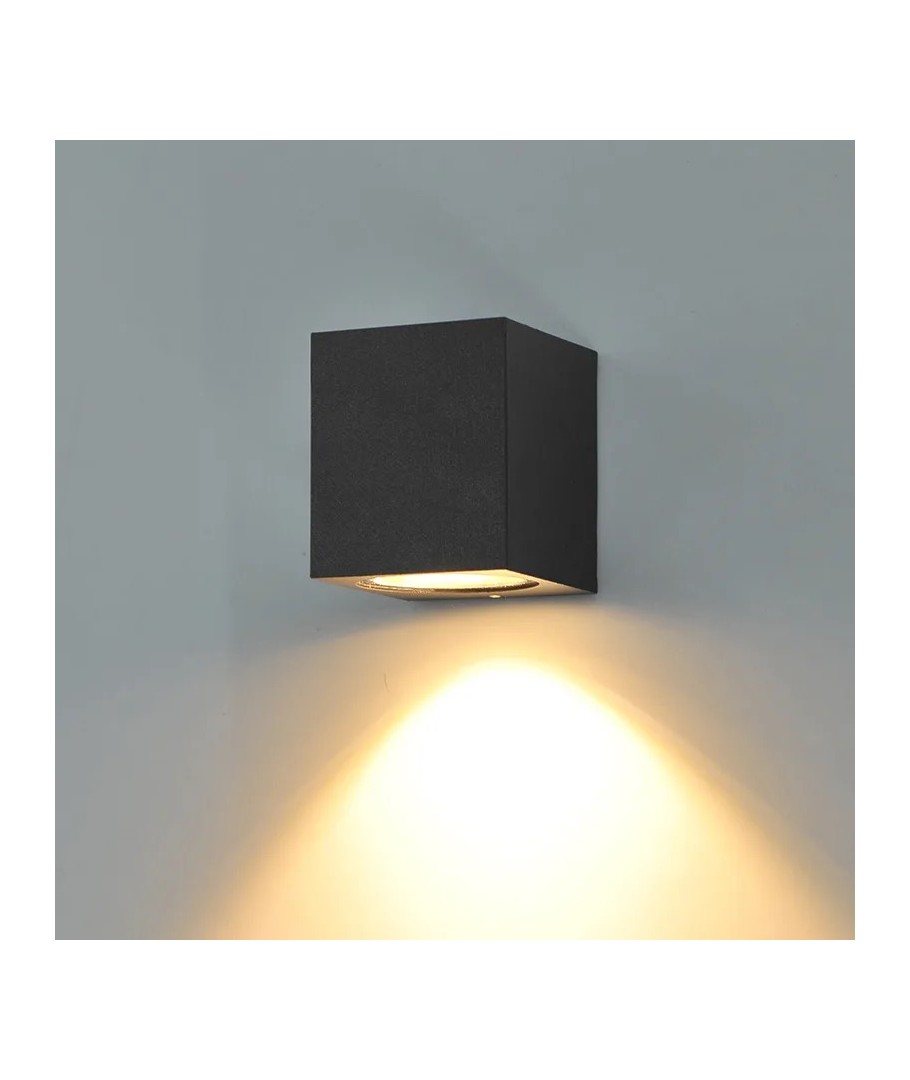 Upplev elegansen och funktionaliteten hos denna fyrkantiga LED-vägglampa som passar både inomhus och utomhus. Med sin stilrena svarta design och kompakta mått på 68 x 80 x 80 mm, smälter lampan in i alla miljöer och ger en modern touch.