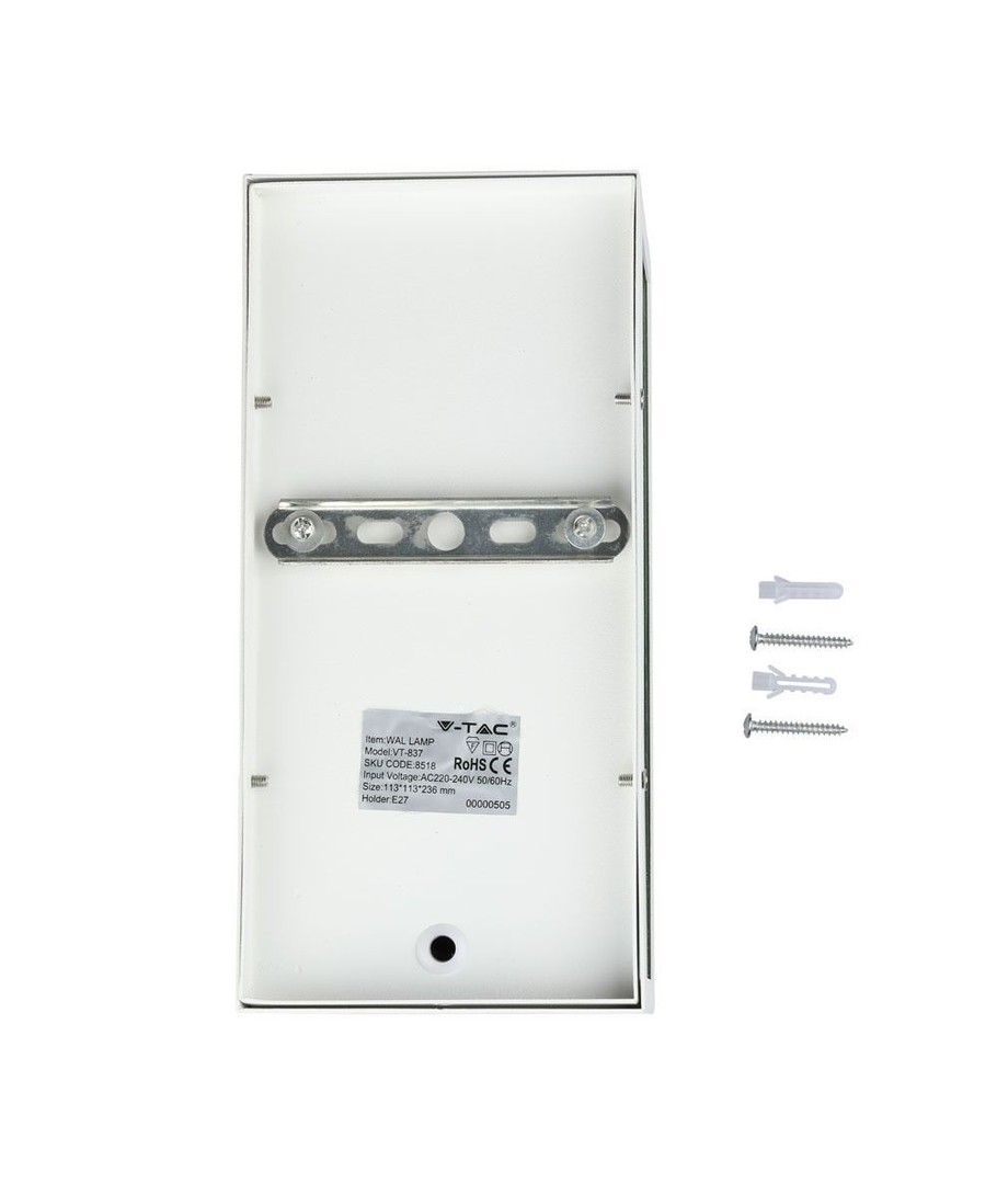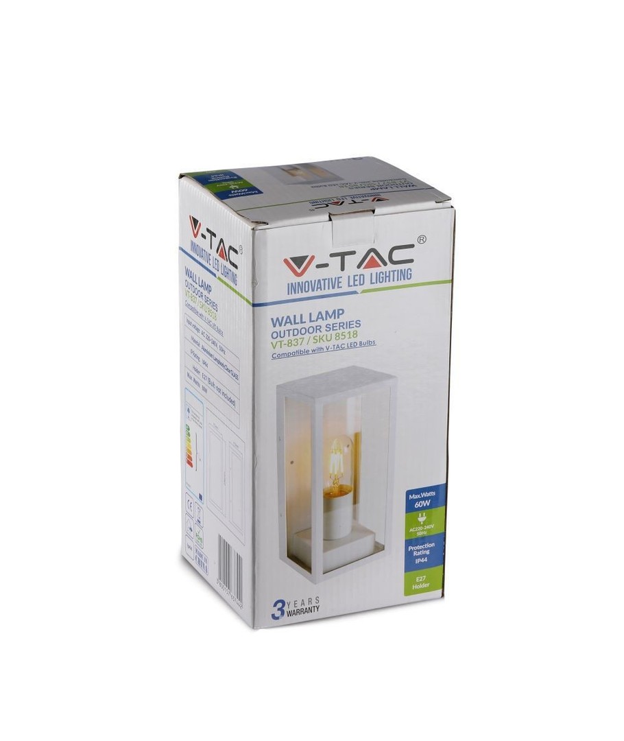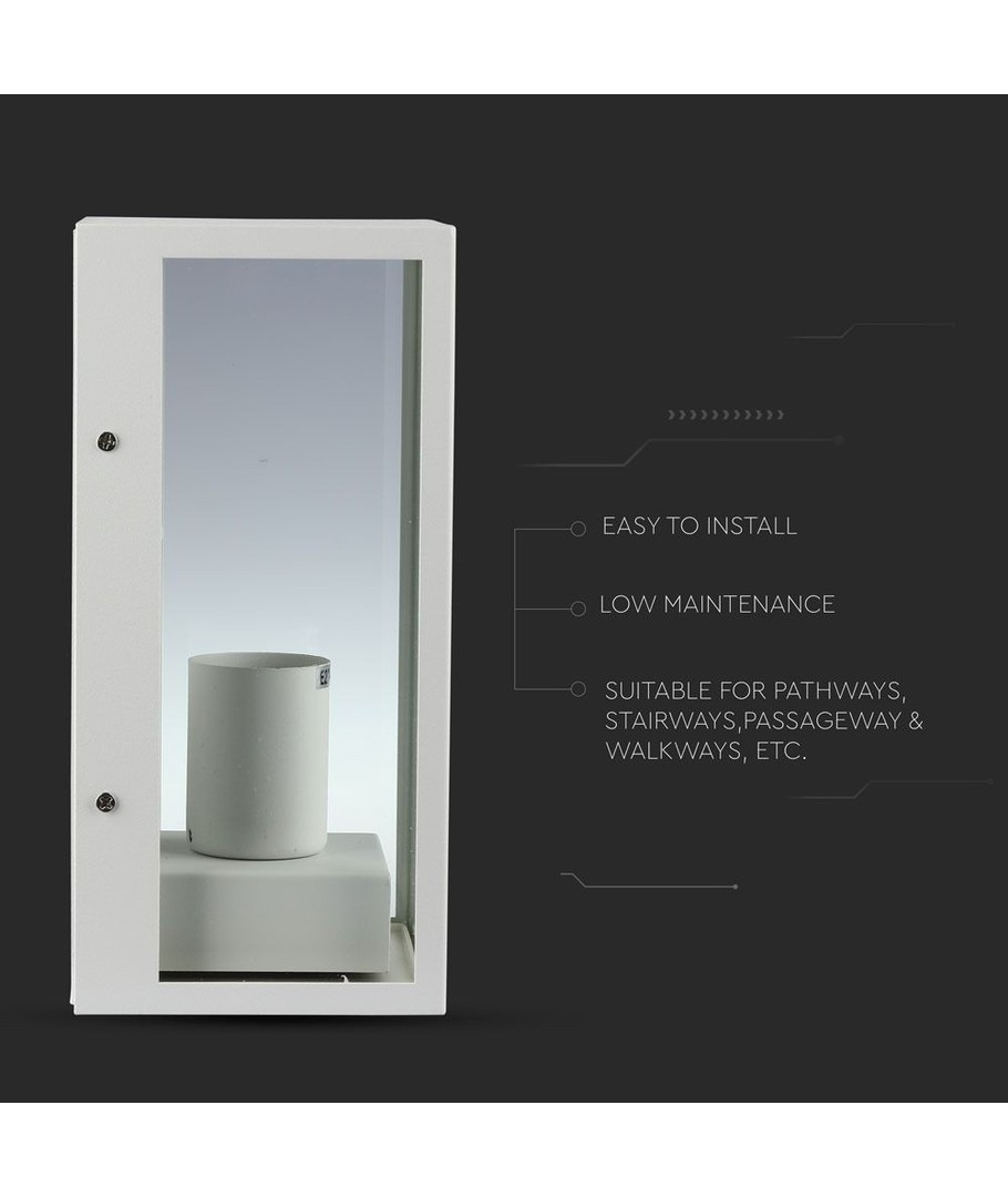 Den stilrena vita vägglampan från V-Tac är den perfekta lösningen för att förhöja atmosfären i din utomhusmiljö. Med sin tidlösa design och robusta konstruktion är denna lampa både ett estetiskt och funktionellt tillskott till din uteplats, balkong eller trädgård.