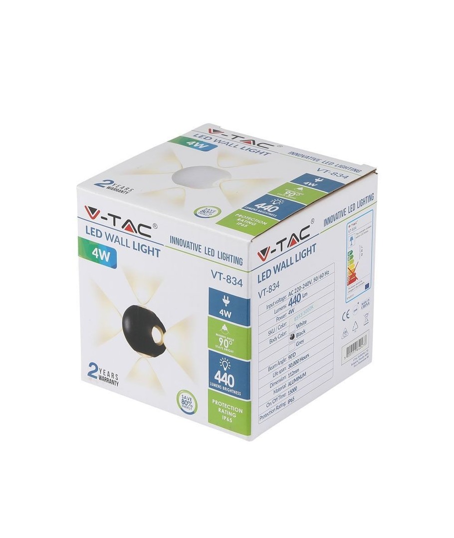 V-Tac 4W LED svart vägglampa är ett optimal ljusalternativ som passar in i flera miljöer, både inomhus och utomhus.