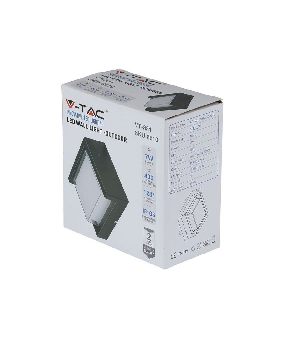 V-Tac 7W LED svart vägglampa erbjuder en perfekt blandning av stil, hållbarhet och energieffektivitet för dem som söker en tillförlitlig och estetiskt tilltalande utomhusbelysning. Med sina imponerande specifikationer och högkvalitativa ljus är denna lampa ett utmärkt tillägg till varje modern exteriör.