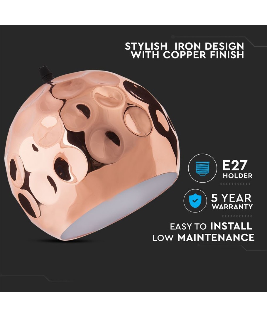 Upptäck den stilfulla och moderna Pendellampan i koppar för E27, perfekt för att tillföra elegans och funktionalitet till vilket rum som helst. Denna lampa levereras utan ljuskälla, vilket ger dig friheten att välja den ljuskälla som passar bäst till din inredning.