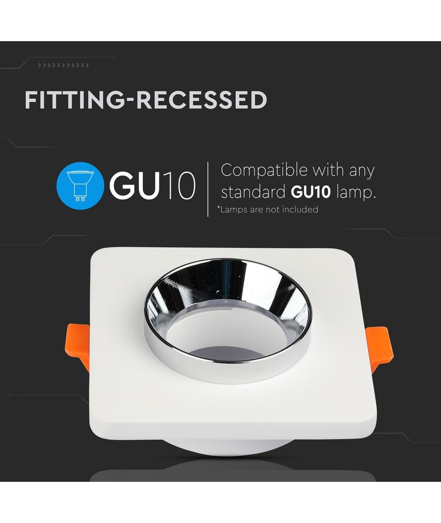 GU10 Gips Metall - Elegant fyrkantig spotlight med kromdetaljer.