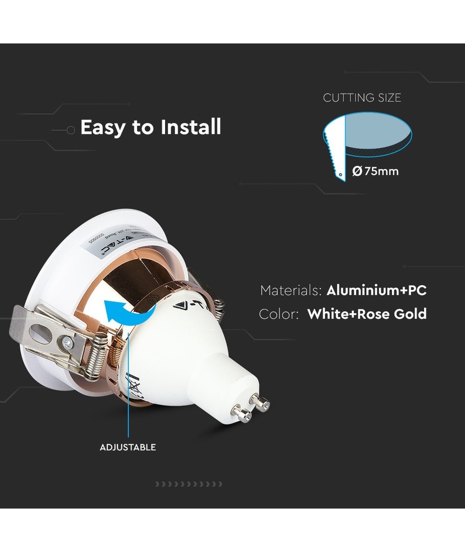 GU10 infälld spot - Rund, vit och rose gold, aluminium, IP20 inomhus V-TAC Expandera