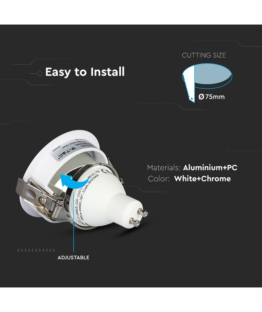 GU10 infälld spot - Vit/krom, aluminium, Hål: Ø7,5 cm, Mått: Ø8 cm V-TAC Expandera