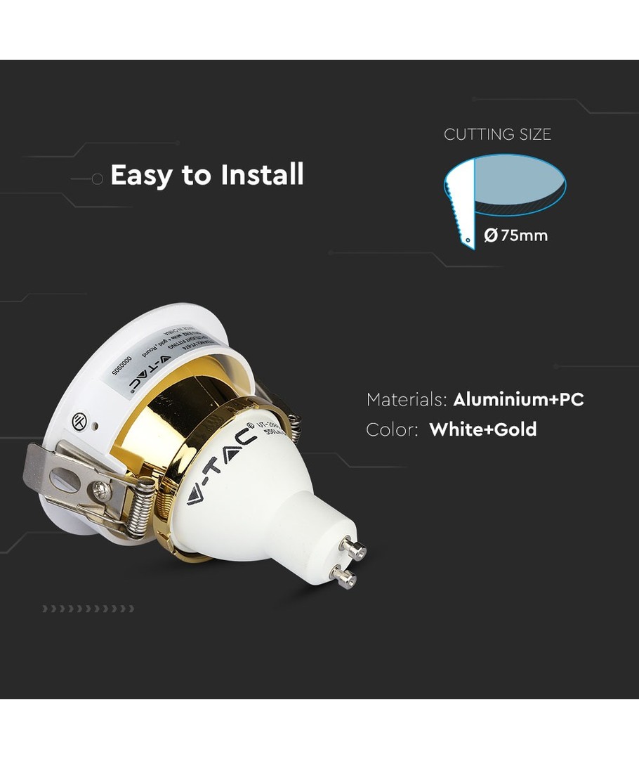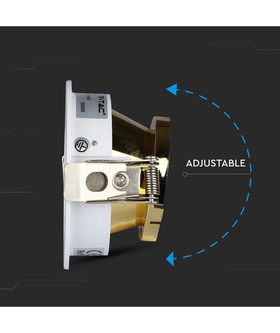 GU10 infälld spot - Rund, vit/guld, aluminium, IP20, hål: Ø7,5 cm, mått: Ø8 cm V-TAC Expandera
