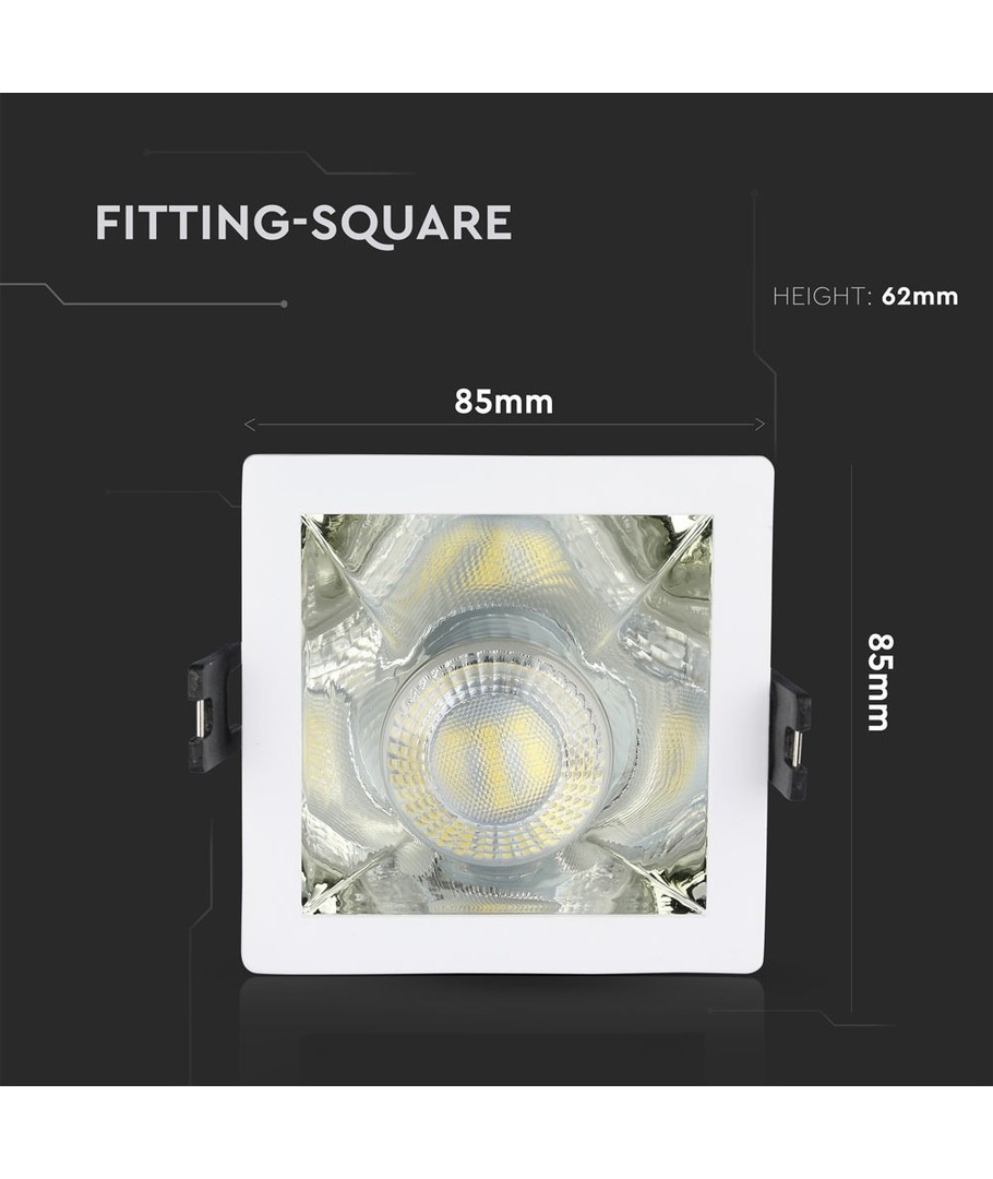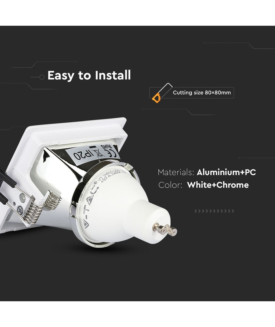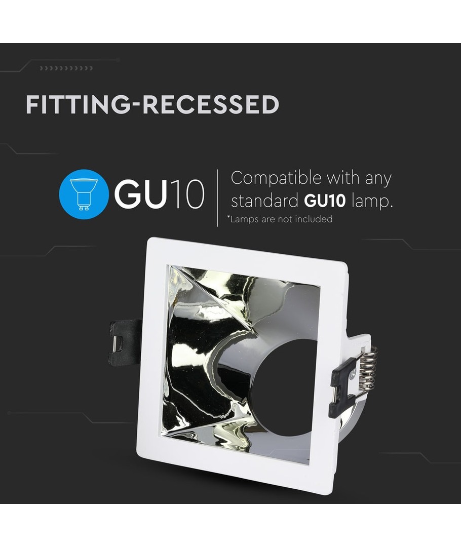 GU10 infälld spot, kvadratisk - Vit/krom, aluminium, hål: 80x80 mm, utan ljuskälla V-TAC Expandera