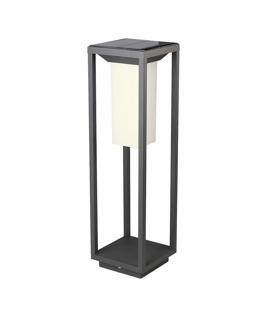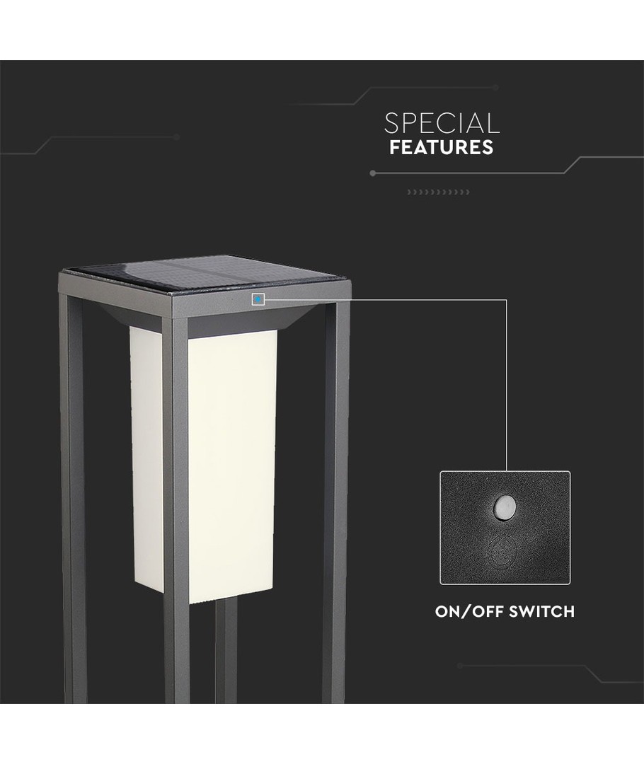 Upptäck den moderna 2W LED Solbollard med ett grått hus. Den är perfekt för att lysa upp din trädgård eller gångväg med elegans och effektivitet.