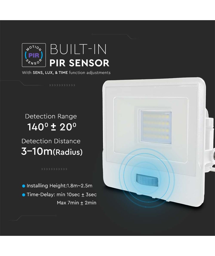 Sammanfattningsvis, denna 20W PIR sensor strålkastare erbjuder exceptionellt ljus med pålitlig prestanda, vilket gör den till ett perfekt val för såväl professionella som privata belysningslösningar.
