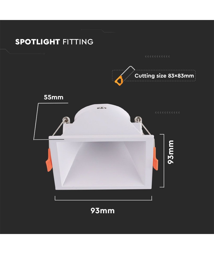 Med dimensioner på 93 x 55 x 93 mm och en hålstorlek på 83 mm, är denna lampa skräddarsydd för att passa perfekt i olika inbyggnadsapplikationer. Den är idealisk för användning i tak och väggar där du vill ha en subtil och stilren belysningslösning.