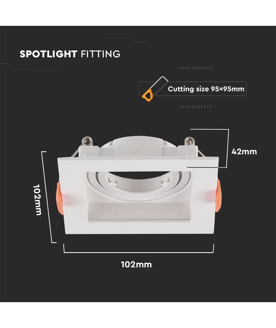 Med en kompakt design och mått på 102 x 42 x 102 mm, är denna lampa både diskret och effektiv. Den är designad för att passa i en hålstorlek på 95 mm, vilket gör installationen smidig och enkel.