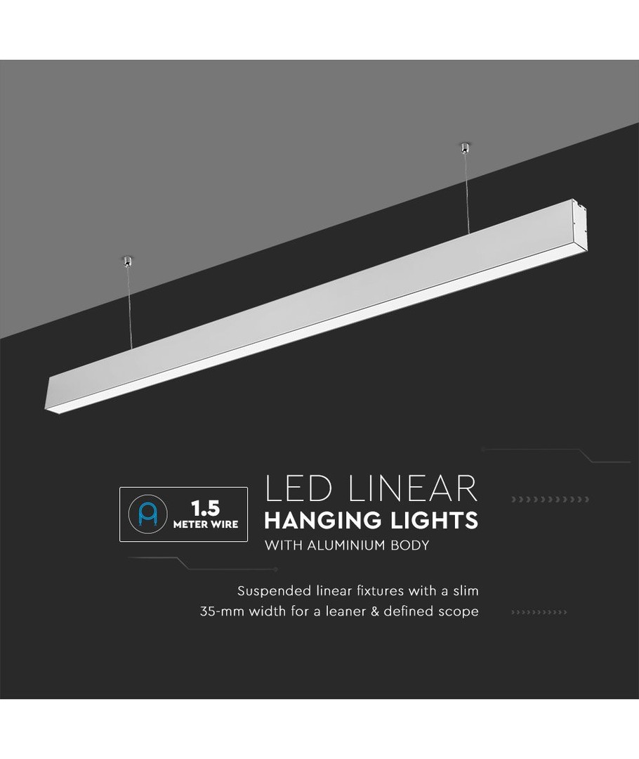 Upptäck en modern belysningslösning med den 40W LED linjära hänglampan. Denna lampa erbjuder en ljusstyrka på 3300 lumen och har en bred spridning på 120 grader, vilket säkerställer en jämn och effektiv ljusfördelning. Perfekt för arbetsplatser och hem, tack vare dess högkvalitativa ljus med ett RA-värde på 80-85, vilket garanterar att färger visas naturligt och vackert.