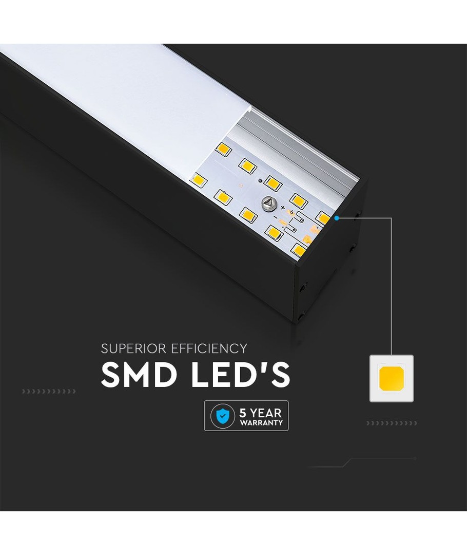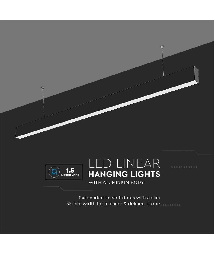 Det linjära hängande ljuset är försedd med ett svart hölje som ger en stilren och modern look, vilket gör det enkelt att integrera i olika interiörer. Trots HT-karaktären av kalla färgtoner med kallvitt ljus (6400K), är denna belysning idealisk för miljöer som kräver fokus och koncentration, som exempelvis lackeringsverkstäder, akvarieljus och viss dekorationsbelysning.