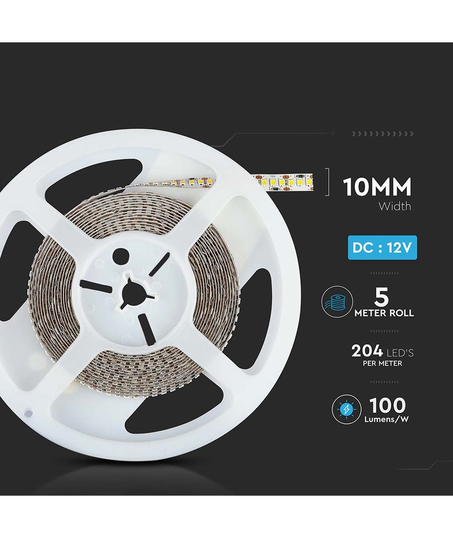Denna LED strip är ett utmärkt val för dem som söker hög ljuskvalitet och enkel installation. Med överlägsen färgåtergivning och neutralvit belysning fungerar den optimalt i olika miljöer, från kontor till hemmabruk där ljusets karaktär verkligen räknas.