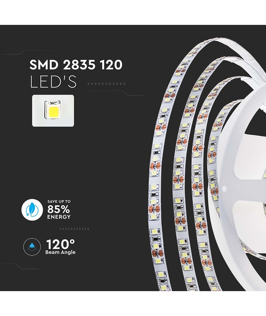 Denna LED strip erbjuder en perfekt lösning för dem som söker hög ljuskvalitet och jämn ljusfördelning. Med sin 120 grader breda spridning säkerställer den ett jämnt och naturligt ljus i alla typer av miljöer.