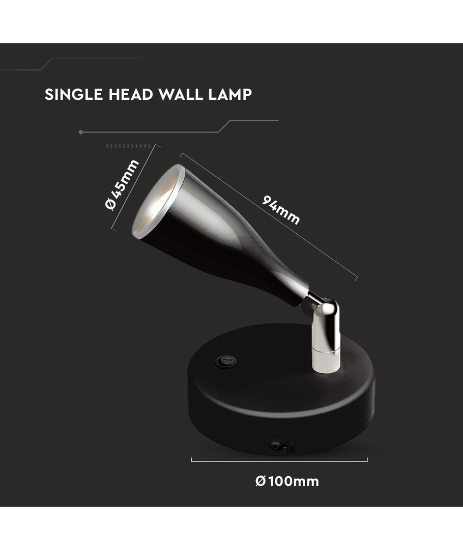 Lampans kompakta dimensioner, 100 x 45 x 94 mm, gör den lätt att montera nästan var som helst. Den är utrustad med en integrerad ljuskälla och en praktisk brytare för enkel användning.